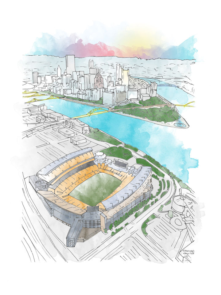This piece captures the home of the Pittsburgh Steelers, a stadium that embodies the city’s passion for football. Set along the river with its bold yellow seats and views of the skyline, it’s more than a sports venue. It’s a gathering place where traditions are carried, loyalty runs deep, and game days unite the city. The composition reflects the energy, pride, and spirit that make Pittsburgh unforgettable.