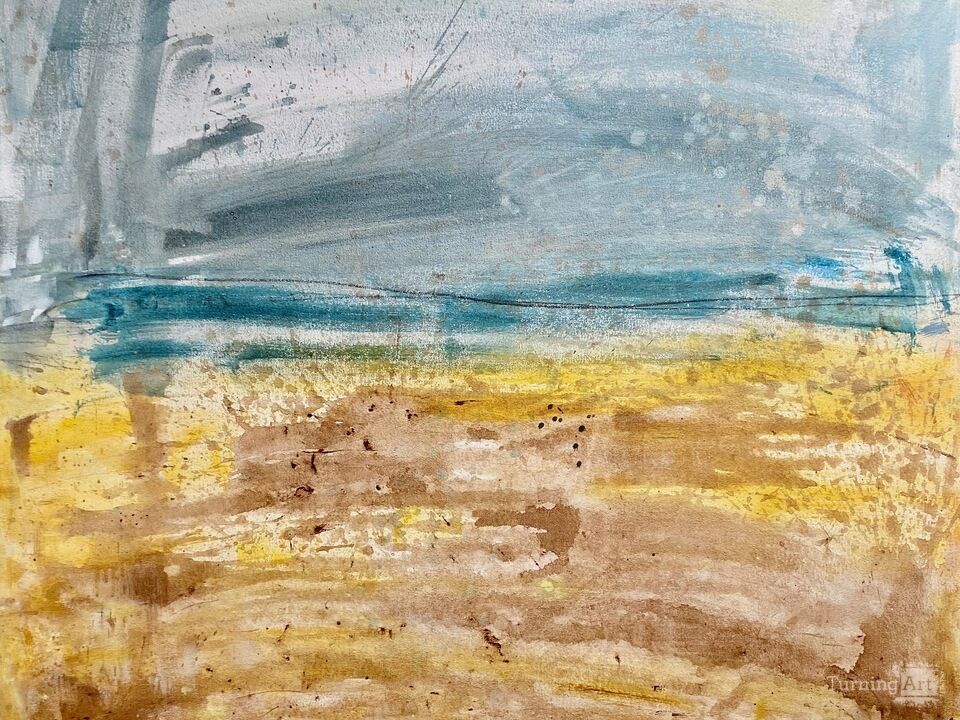 'Horizon' a piece by Portland, OR-based artist, Mara Safransky, blends the serene beauty of color field painting with the raw emotion of abstract expressionism and with reference to land, sky and sea, it captures the essence of traditional landscape in a new way.