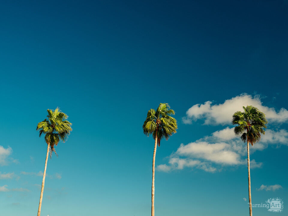 Four beautiful palm trees grace the marina in St Petersburg Florida on a perfect winter day
