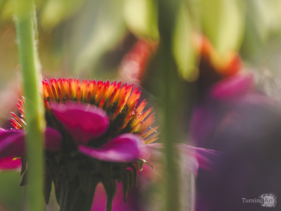 Bathed in golden light, this flower glows from within… its spiked orange core reaching upward through petals of magenta and shadow. In the Light of Summer invites viewers into the quiet drama of nature’s smallest forms. The shallow focus and layered textures evoke wonder, depth, and the feeling of being surrounded by warmth. Ideal for healing spaces and restorative interiors, this piece offers a grounding sense of presence and curiosity.