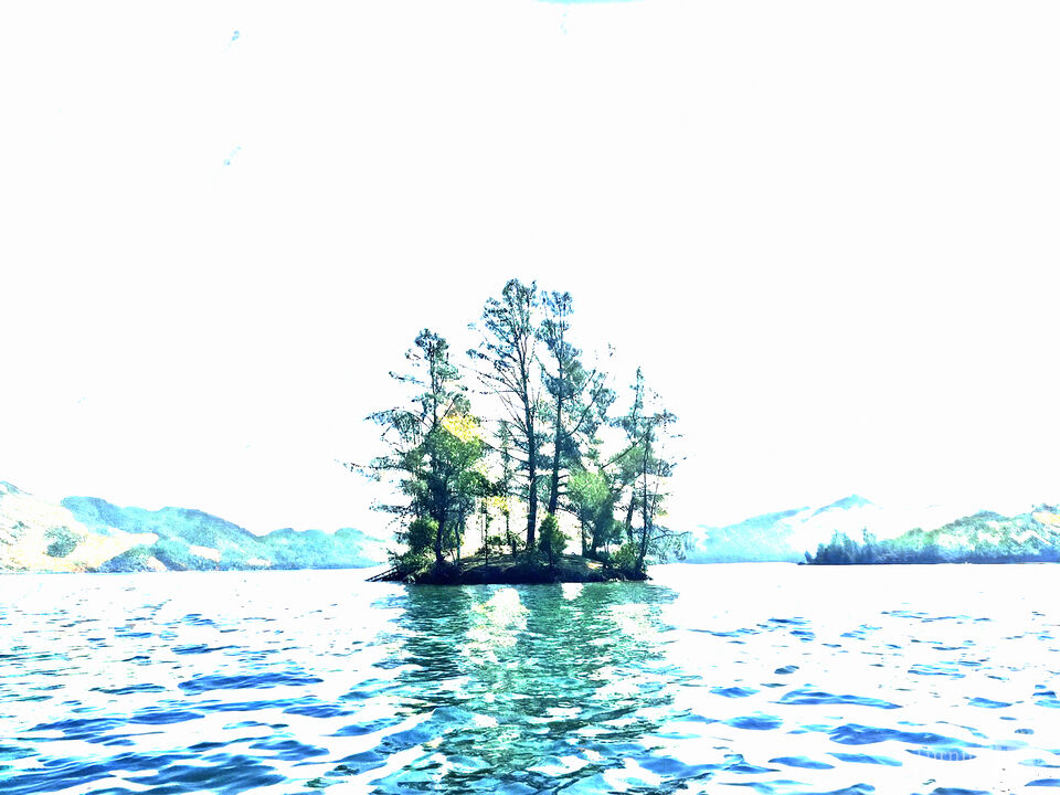Island 0180 is a bright, sketch-like depiction of a lovely lake of placid waves. In the center you'll find a cute, tree-filled island. Layered lands of hills and mountain ranges frame the lake. The water is punctuated with details: ripple, reflection,… The color palette is youthful & contrast-rich, the brush-stroke dynamic, while the topic brings the viewer out into calming nature. These artwork prints up to 70 inches wide.