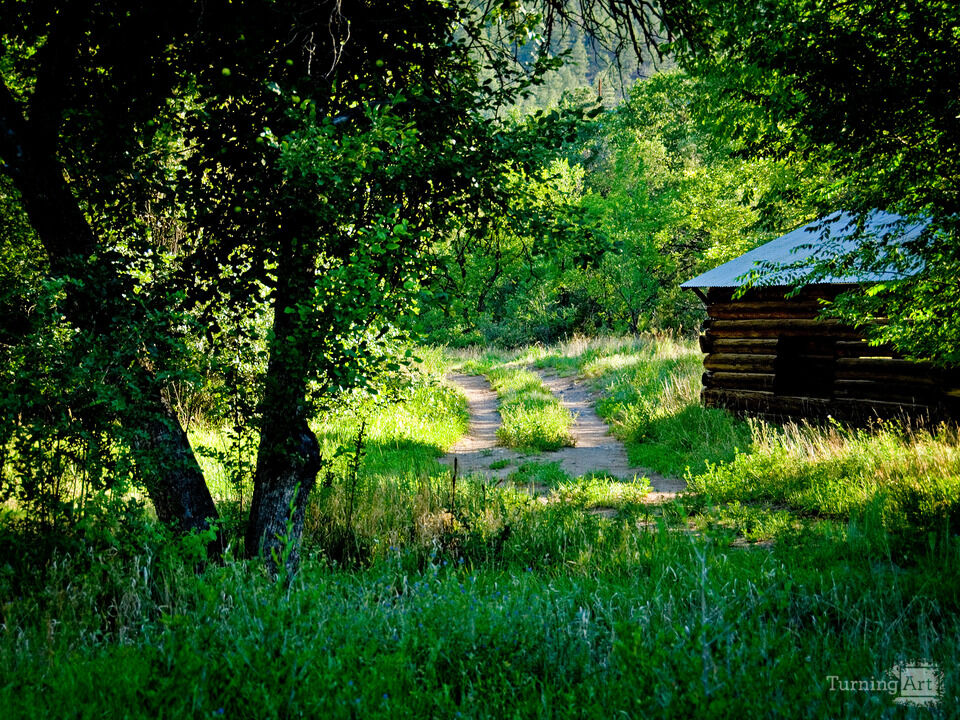 A lone log cabin in the lush green summer of the Jemez Mountains, New Mexico. An old apple tree planted generations ago still provides fruit for wildlife on the edge of the forest. The feeling I get from living and working in nature makes every day a wonderful experience.