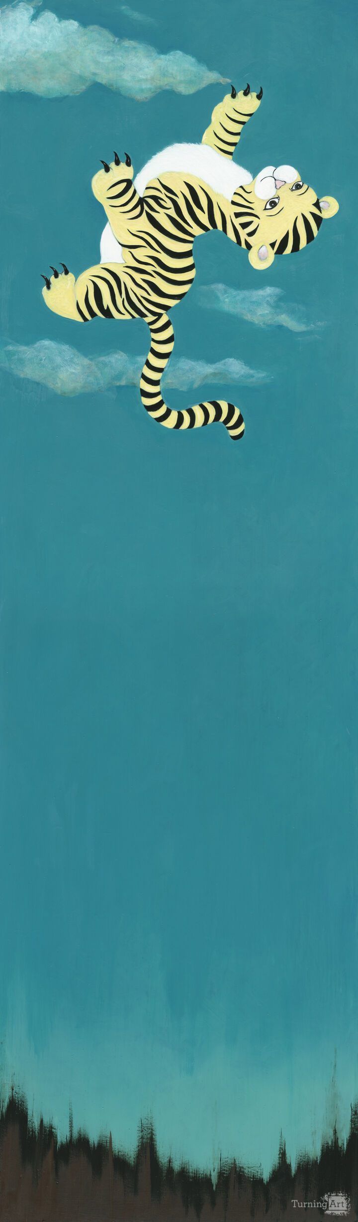 She explores Jungian themes from the deep preconscious, themes that have appeared in fables around the world for hundreds of years and which continue to resonate today. Her animals take on human characteristics, and her humans, children all, exhibit animal parts, drawing a mystical connection between us and our animal nature. The characters in Gregory’s work sprout roots, float in the air, or do both. Her creatures are innocent and perplexed, sly and savvy, or passive and subject to the whims of nature, but never victims of their fate.