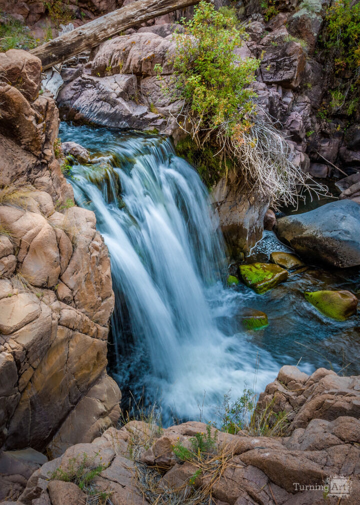 This beautiful Falls is on the Guadalupe River in the Jemez Mountains of New Mexico. Water is a rare commodity in the Southwest, and offers a refreshing relief from the dry desert country. The winter snows and summer rains make life possible.