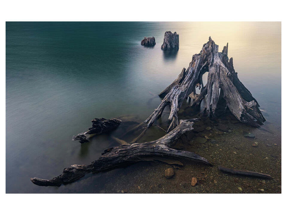 In the heart of Rattlesnake Lake's dry season, nature unveils a striking tableau of petrified Red Cedars and Douglas Firs—like silent witnesses to epochs long past. As the water recedes, a hauntingly beautiful sight emerges—a graveyard of what was once an ancient old-growth forest, hidden beneath the lake's tranquil surface.