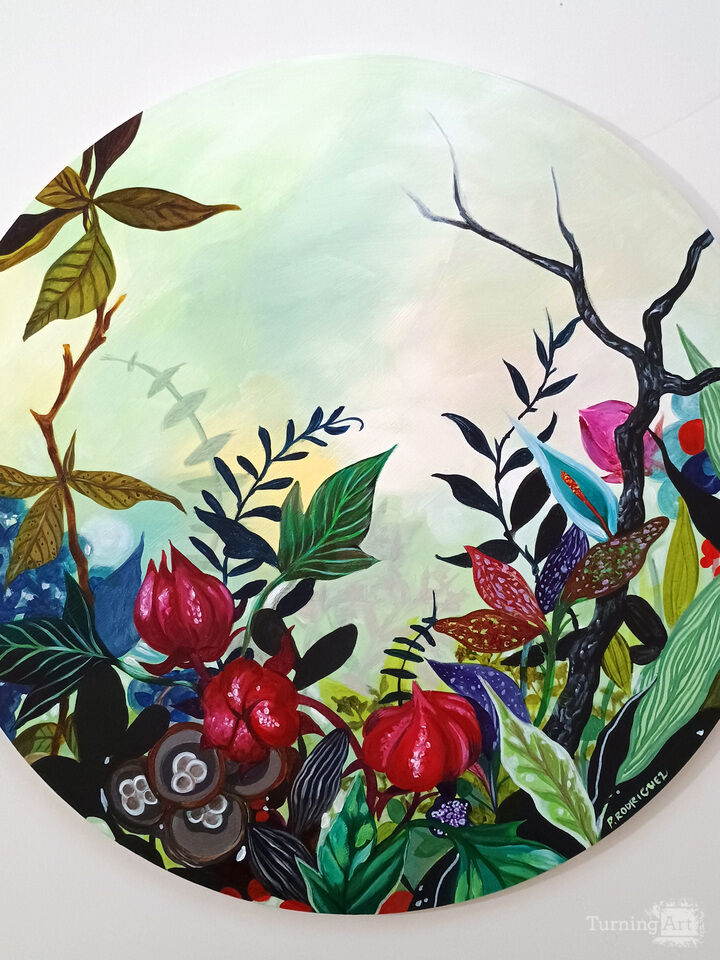 Mainly known as a painter, she does delve into 3D works with paint still a prominent element of the work. She is most known for her colorful style and handling of the theme of “Nature”.