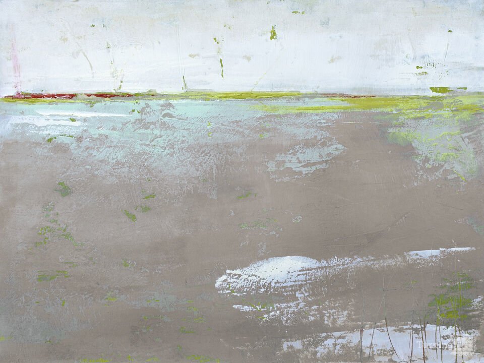 "Martha's Shallows" is a serene abstract landscape in which layered grays suggest the hush of a misty shoreline. A pale sky and soft horizon hues add contrast and warmth, while textured brushwork creates quiet depth and movement. This piece brings a gentle, reflective calm to any space, perfect for creating a peaceful, restorative atmosphere.