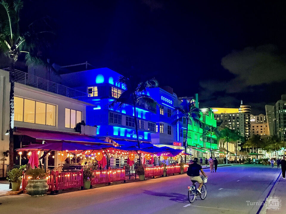 Lining Collins Avenue in Miami is a row of historical buildings, many of which are hotels and restaurants. They were created in the Miami Art Deco style starting in the 1930s, which evolved from the New York Art Deco typified by the Chrysler and Empire State Buildings, and also was known as the “Skyscraper Style.” The style was brought back from New Yorkers who visited the 1925 Paris World’s Fair, where Art Deco was highlighted. Miami Art Deco is distinct in its colorful buildings; the palette was chosen by designer Leonard Horowitz, who was inspired by Miami Beach sunsets.
