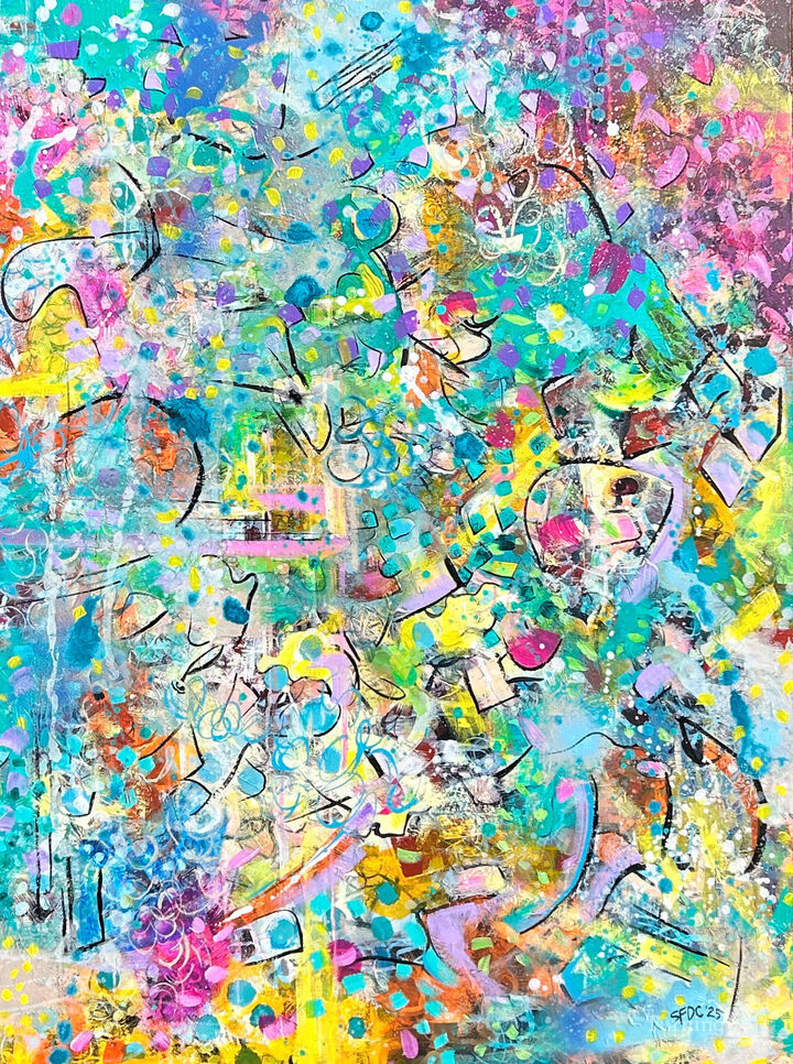 As an intuitive, abstract artist, Sarrah Dibble-Camburn's work is an exploration of the unseen and the felt, an attempt to translate the vibrations and frequencies that shape our existence into visual form. Dibble-Camburn believes that every element in the universe—whether animate or inanimate—is bound by energy, and it is this energy that guides her creative process. Her art seeks to elevate the spirit, to capture the subtle currents that flow through us and around us, and to express the profound connection between our inner worlds and the greater cosmos.