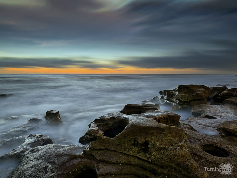 A dreamy long exposure sky at sunrise along Florida's east coast. Many days the winter weather creates a certain atmosphere along the Atlantic coastline where the warmer ocean temps create fog, haze and mist all at once. I have found using long exposure settings brings out the most dramatic shots of this sky.