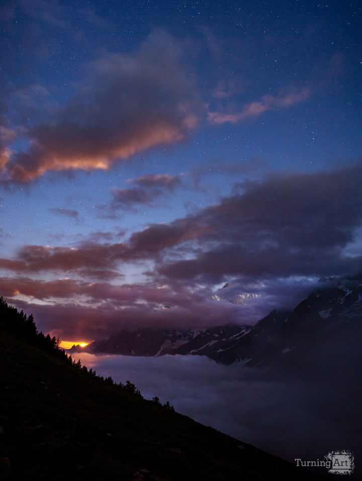 A balcony trail in northern Italy, lead me to the Rifugio Bonatti hostel for the night with magnificent views. Around 3:30 am I braved the chilly morning to watch the moon rise and fall between the surrounding mountains.