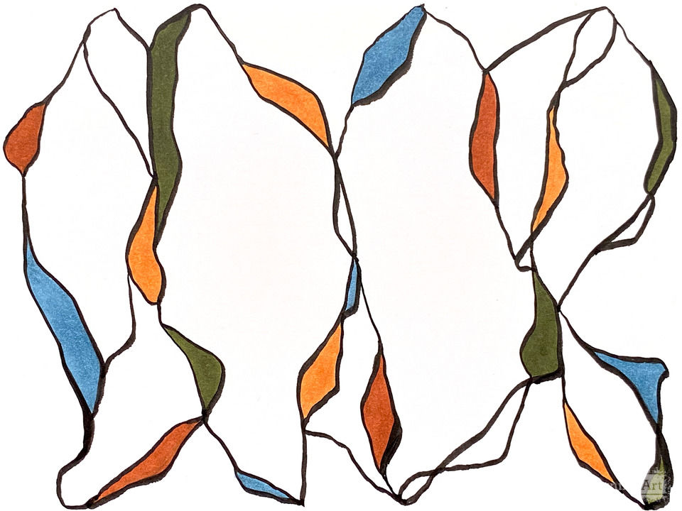 Musing Series drawings are whimsical groupings, related by color. When creating them, I imagined line moving as a dance, finding shape and color along the way.