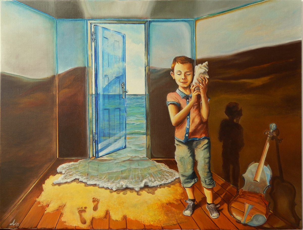 original oil on canvas, unique, dated and signed by the artist Adina Lohmuller (Lupan), inspired by childhood innocence, a world full of imagination joyful and immaculate thoughts