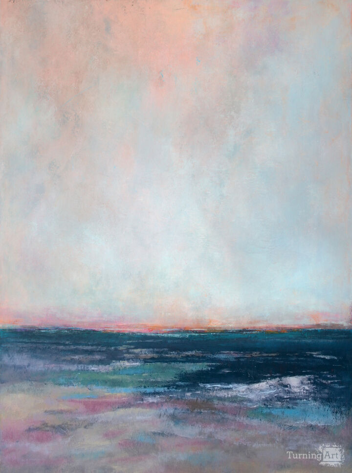 Coastal seascape meets quiet elegance in this abstract landscape painting, where soft pastel skies blend into impressionist layers of textured ocean blues. Gentle horizontal strokes evoke dawn or dusk, offering tranquil movement and soothing rhythm. Ideal for serene interiors with refined taste.