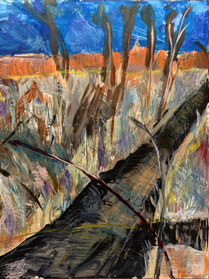 This piece is part of a four-part work on panel, of which, all can be seen on this site. I painted this early meadow in 2020, I had gone south to attend to my father in his last illness. He was in hospital for ten days, during which I was in his room in the day, and I painted in the evening, in his laundry room. It was early March, there was a prairie meadow near the house, I would walk there for some peace before driving to see him. The world was coming back to life, as he was slowly leaving it. I wanted to honor the peace it gave me.