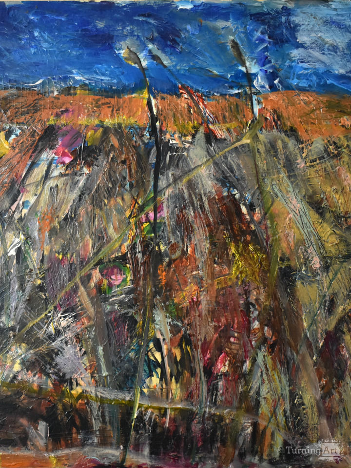 This piece is part of a four-part work on panel, of which, all can be seen on TurningArt. I painted this early meadow in 2020, I had gone south to attend to my father in his last illness. He was in hospital for ten days, during which I was in his room in the day, and I painted in the evening, in his laundry room. It was early March, there was a prairie meadow near the house, I would walk there for some peace before driving to see him. The world was coming back to life, as he was slowly leaving it. I wanted to honor the peace it gave me.