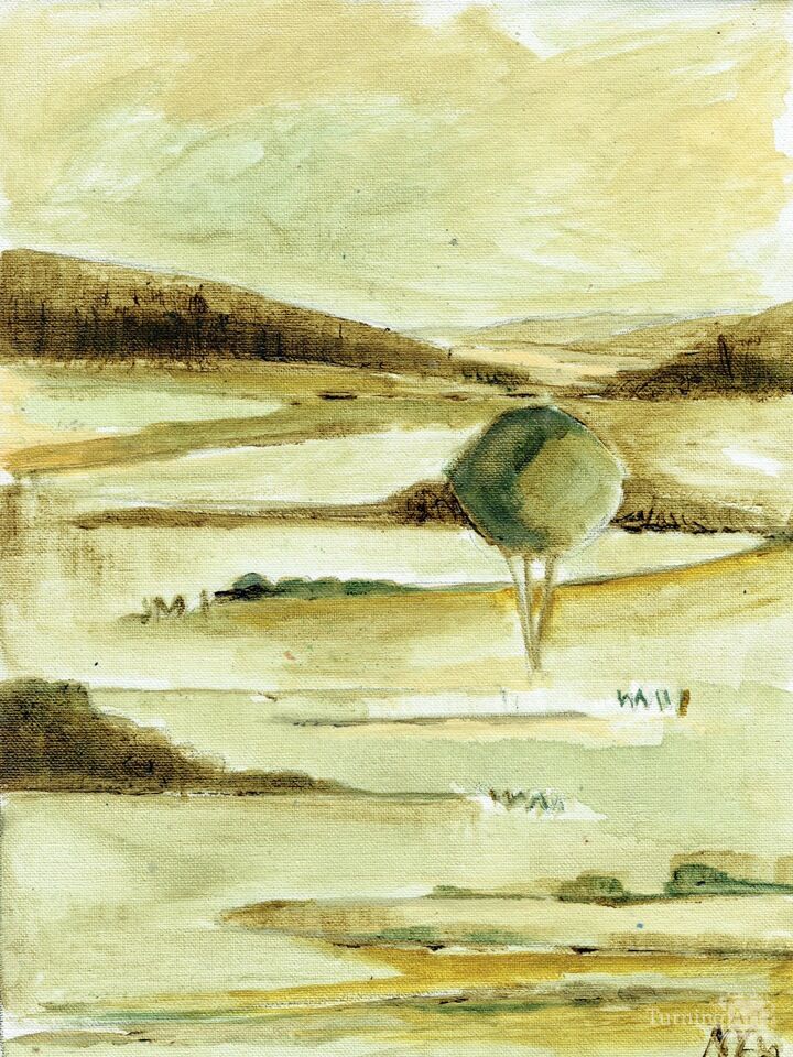 A paired meditation on open landscapes—muted greens, soft ochres, and quiet skies distilled to their essence. Subtle shifts in light and texture invite a moment of pause, capturing the timeless calm between horizon and field.
