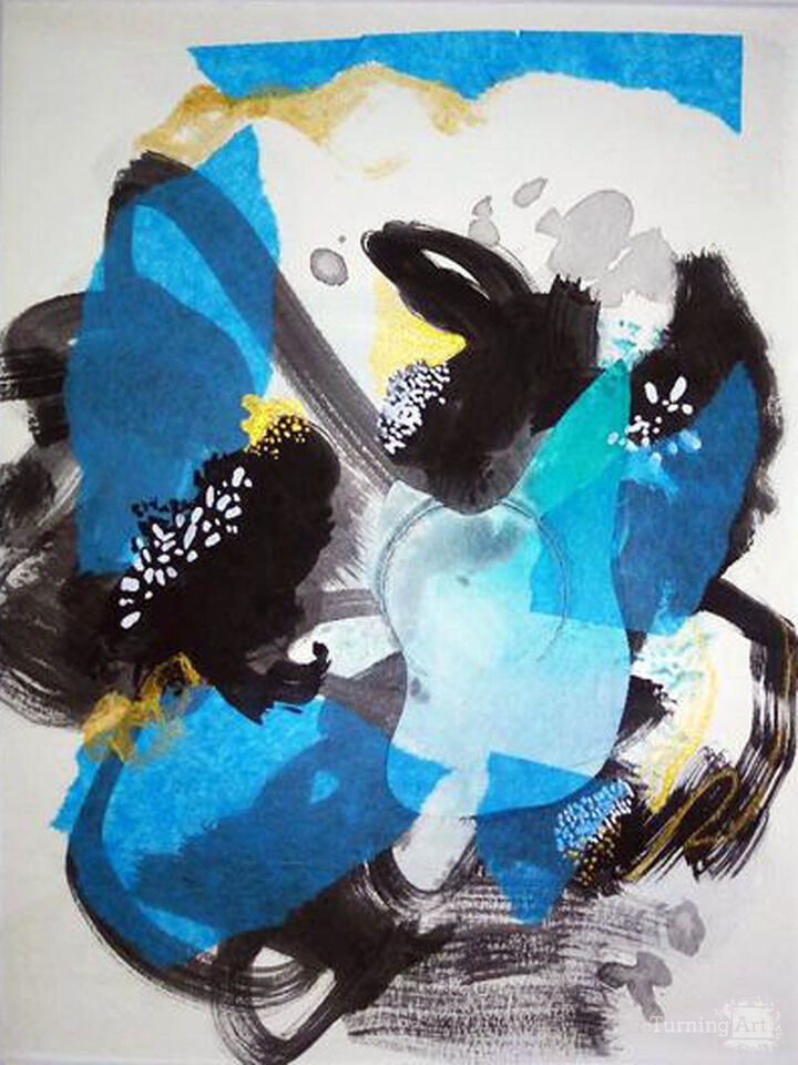 Pacifica deals with themes of ocean in a an abstract form of boundary and shape. A collage of watercolor and acrylic water based paints further the theme of water as a contained unit.