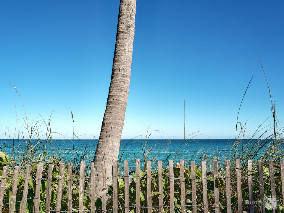 Palm Tree trunk and storm fencing on Jupiter Island Beach Florida on a cool winter day