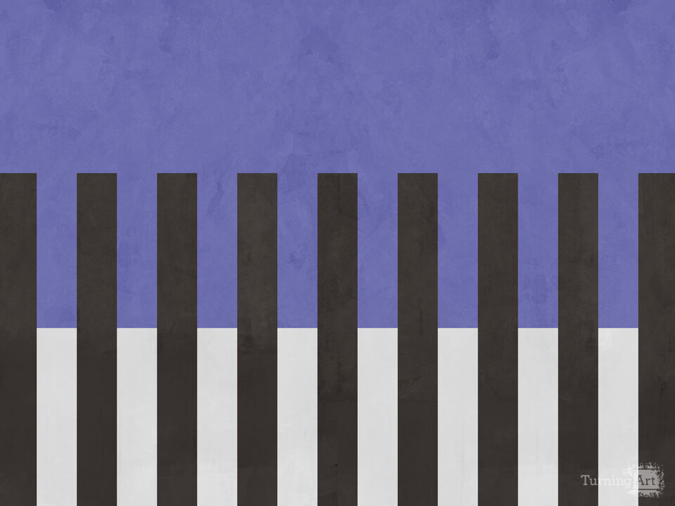 Piano Very Peri is a graphic artwork with bold vertical stripes that echo piano keys, set against a textured periwinkle-purple background. The high-contrast black and soft white bars feel modern and rhythmic, adding structure without getting busy. This wall mural suits music rooms, studios, teen bedrooms, and creative home offices, and it also works as a feature wall in minimalist interior design. Pair it with monochrome décor, warm wood, or brass accents for balance.