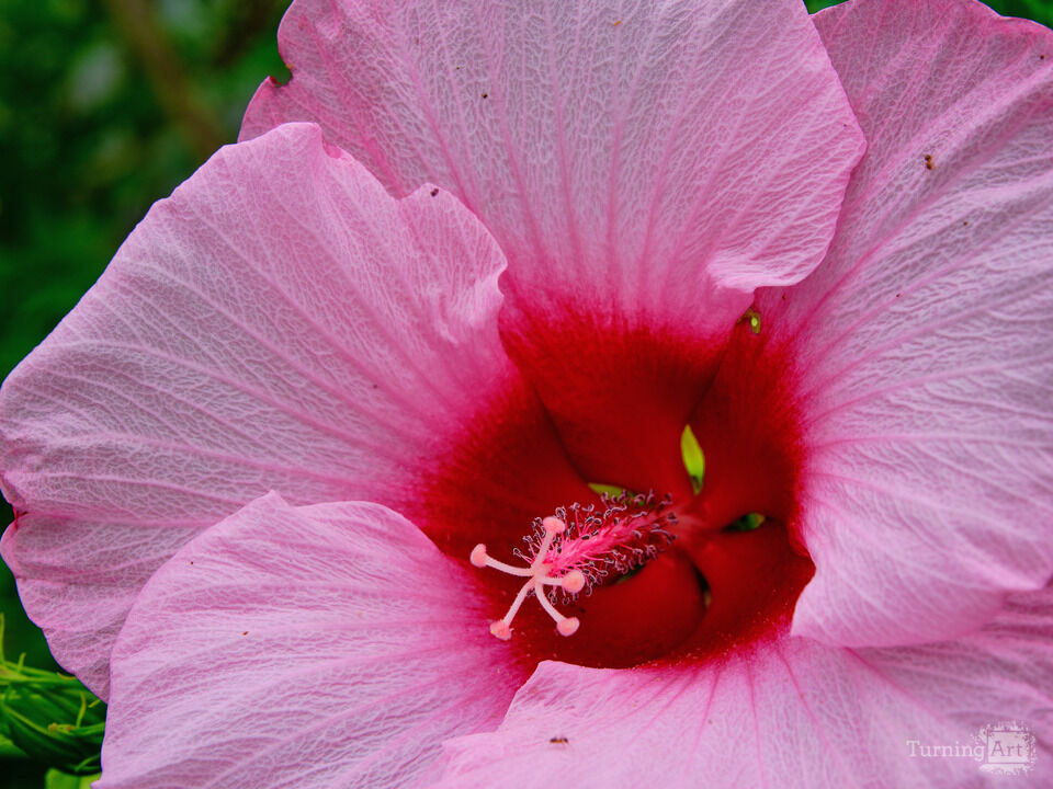 Pink Hibiscus flower in a botanical garden at Snug Harbor Staten Island