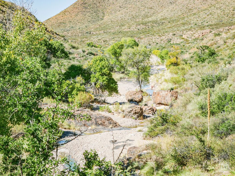The small spring that runs through the Pinto Canyon surrounded by lush vegetation, trees, and rocks. There are numerous hot springs in this area. Coming from Marfa the road is paved for half of the way then becomes gravel. It appears to be well maintained as it passes through the canyon. Ascending out of the Canyon headed toward Ruidosa it get a bit more rugged going for the last 10 miles or so.