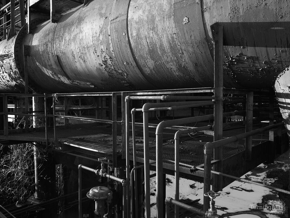 Pipes, Plumbing, wires at the Bethlehem Steel Works in Pennsylvania in Black and White