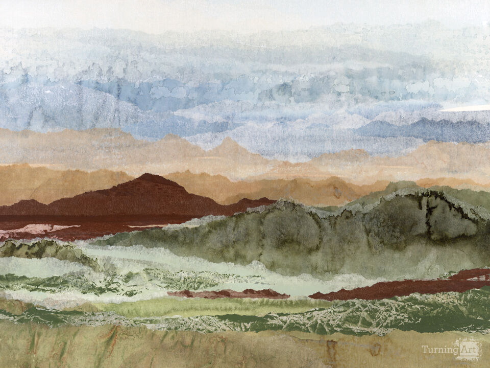 "Plateau Mirage" captures the enchanting warmth of a desert landscape through layers of acrylic paint, ink and translucent wax papers. Escape to a place where burnt sienna, sage, and earthy tones blend beneath a sweeping sky. Inspired by the rustic color palette and textured beauty of southwestern terrain, this piece invites viewers into a serene space where land and sky meet in perfect harmony. An alternate portrait orientation of this print is available.