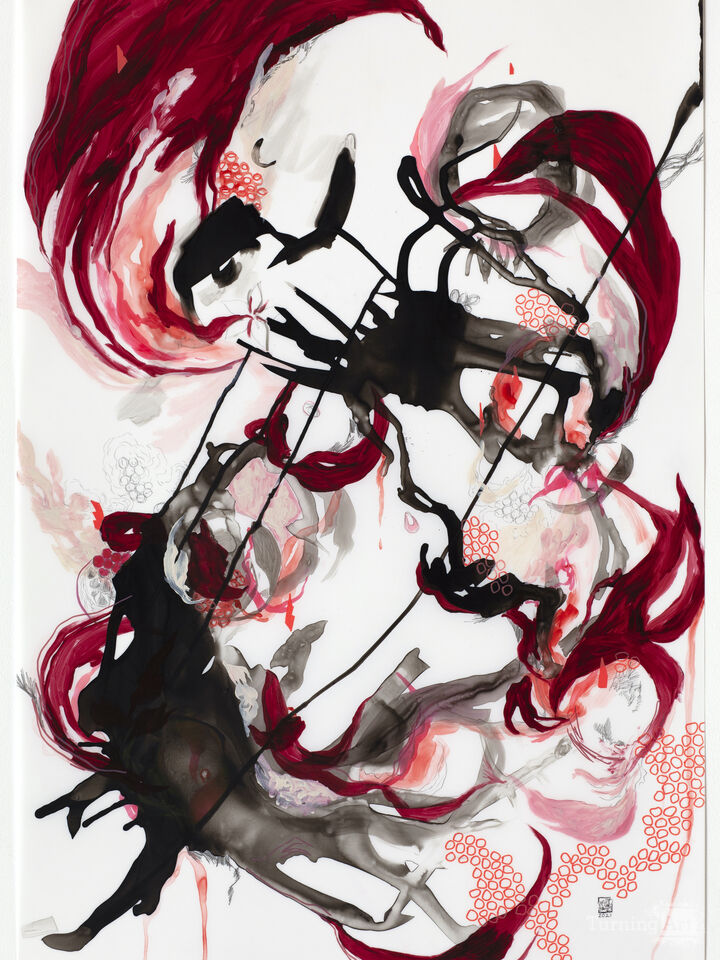 Somerville artist SaraMarie Bottaro (she/her) works principally in ink and acrylic to create her lyrical, abstract pieces. Her art generally explores stories of the sacred feminine in the Ancient Mediterranean. Bottaro received her BFA in Studio Art from the School of the Museum of Fine Arts Boston concurrently with her BA in Peace and Justice Studies from Tufts University. SaraMarie is co-founder, with incarcerated poet Spoon Jackson, of artist collective Rabbits of Realness. The Rabbits publish zines and run workshops in the Greater Boston Area centered around letter writing, creativity, and mental health. SaraMarie has had three solo shows and has also shared her artwork with the public in over 25 group exhibitions. Her work is represented in numerous private collections internationally and that of the Tufts University Chaplaincy.