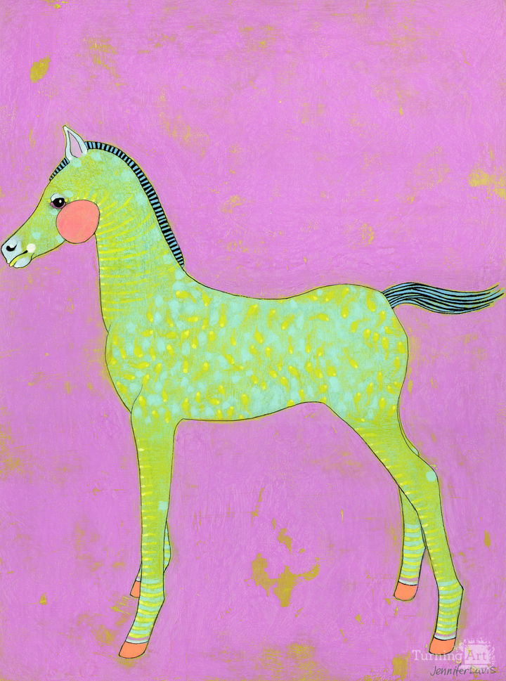 This painting was inspired by a little, vintage, plastic, toy horse.
