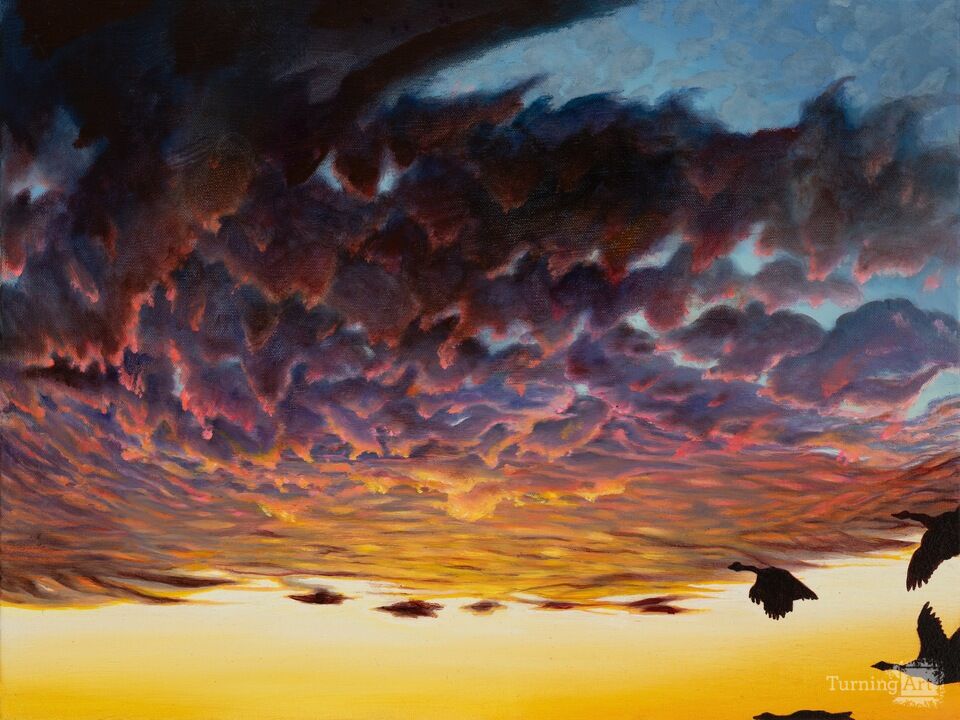 This is part of a series of 11 skies I painted in 2025. The paintings are source material for digital collages I am making for a forthcoming exhibition in Jan 2026.