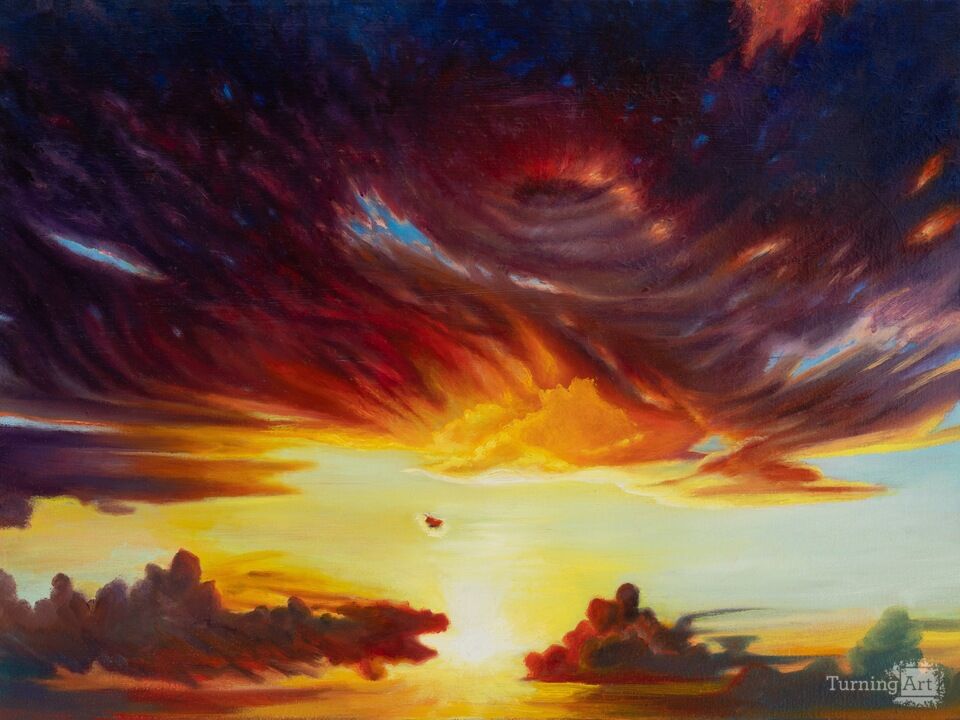 This is part of a series of 11 skies I painted in 2025. The paintings are source material for digital collages I am making for a forthcoming exhibition in Jan 2026.