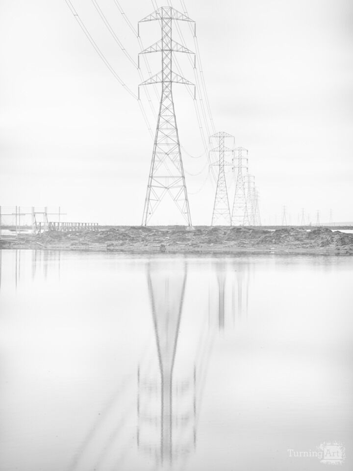 This abstract image shows the massive power that feeds Silicon Valley coming in across the Hayward Marsh.