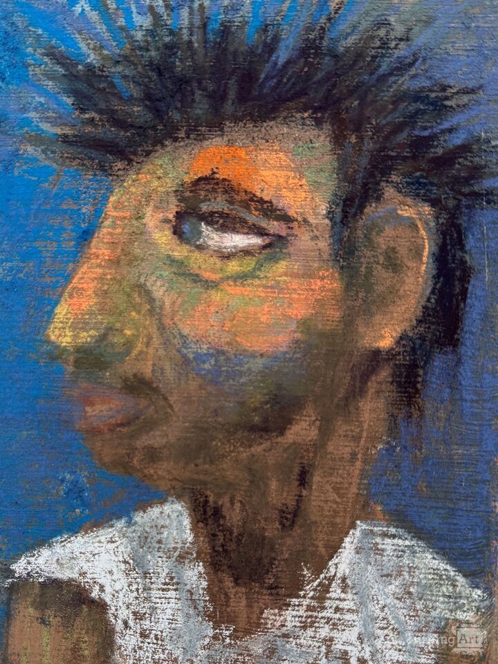 I'm having the best time in my studio doing a self-exploration of the German Expression movement. I'm loving the rawness of this painting style and the unexpected pops of color I'm experimenting with. This is "Punk" and the title can be interpreted in a few different ways. For example, punk as in the movement or punk as in this guy is one. This piece is painted on a compressed board with a layer of gesso application, key for adhering the pastel but it also adds a lot of texture and unexpected 'skips' of pastel over the surface. Experimenting with color, keeping things loose and proportionally 'off' as well as creating pieces that aren't 'pretty paintings" are my goals with this series.