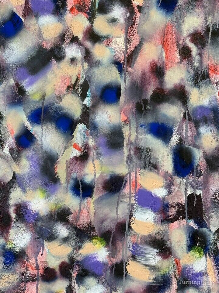 Action has always played a dominant role in the development of Joe's artist's oeuvre and the influence of alternative art forms and mediums can be seen in Joe's willingness to destroy in order to create. He prefers to staple canvas directly to the floor in order to adequately distress his surfaces. Getting paint to do unusual things by throwing, scraping or generally battering the materials is what he strives for. Joe uses liquid paint in squeeze bottles, and he developed a revolutionary new paint application method known as the "Pendulum Painting" which features a swinging bottle of paint on a string.