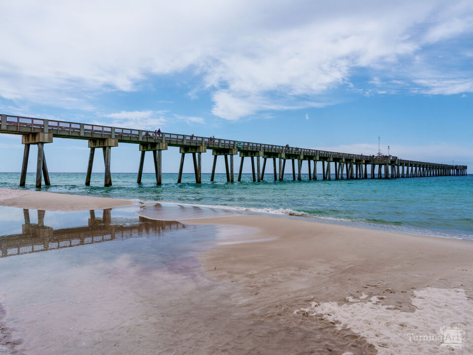 Beside the Russell-Fields Pier in Panama City Beach, a quiet pool of seawater had gathered in the sand, almost like the Gulf was pausing before rushing back to shore. The reflection of the pier stretched across the still surface, creating a beautiful mirror. This is one of those peaceful corners of the Emerald Coast where the world slows down for a moment. The wind was gentle, and the sound of the waves softened everything around me. It reminded me why people return to the Gulf of Mexico again and again, because even in the smallest places, it holds beauty.