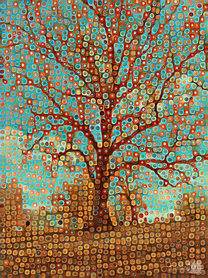 This is a digital photograph of a tree enhanced with filters to give it an abstract effect.