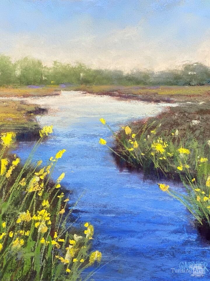 Spring is all about renewal and these yellow wild flowers at the edge of this estuary were the prize we get for enduring the winter months in New England. Spring has become a season that I now look forward to because of all the new growth and beauty that awaits us. This painting captures that spirit of renewal for me.