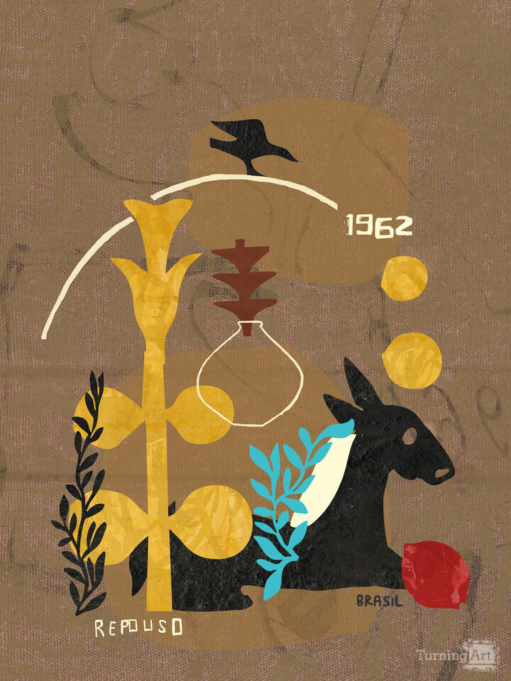 Rogério Arruda is a Brazilian visual artist and illustrator with 15 years of experience. As an enthusiast of artistic production, he has developed a collection of vases and flowers inspired by renowned artists such as Matisse, Van Gogh, Monet, among others. These artworks were created using the technique of digital collage, combining diverse textures, including his own paintings, woodcuts, photographs of textured walls, old books, and more. This unexpected fusion of textures, along with vector drawings, results in a complex and unique work of art, challenging the precise definition of its technique – is it a collage, a painting, or a drawing? In fact, it is a bit of each. It is a fusion of processes, with the sole aim of achieving beauty.