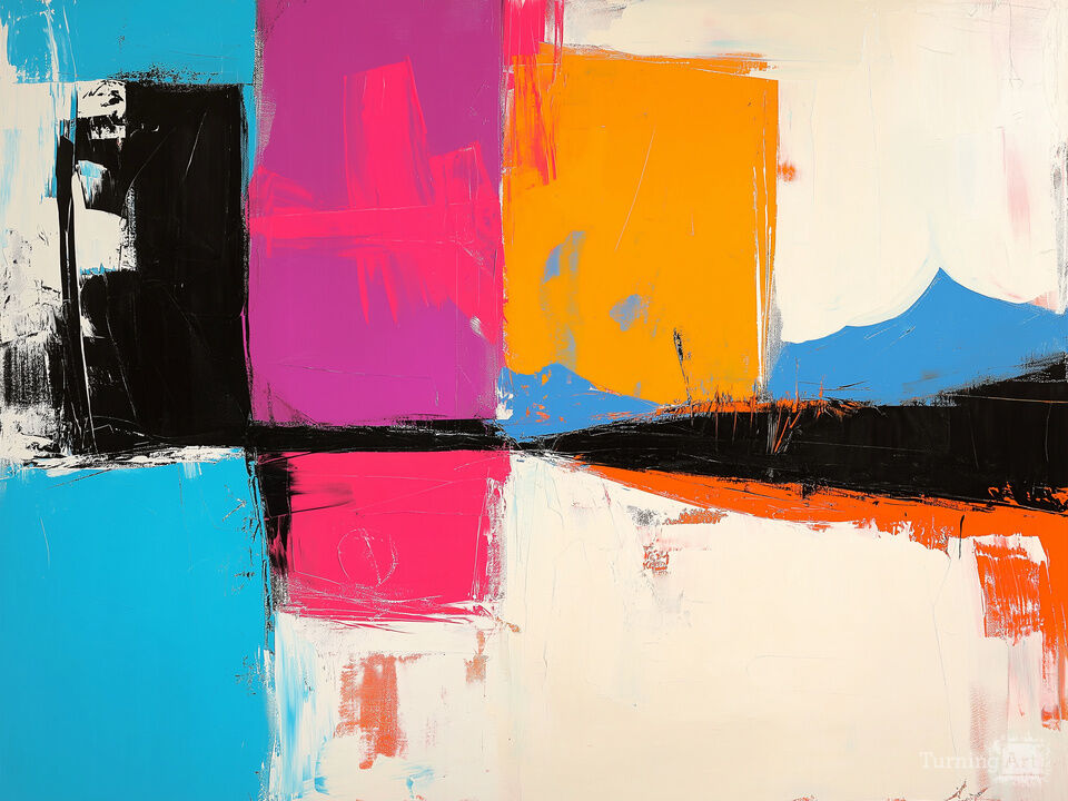 Abstraction as tension and movement. “Resonance” captures the energy of the painterly gesture with bold fields and sharp cuts, where color vibrates between balance and rupture. Dense, tactile black traverses the canvas like a visual backbone, challenged by vibrant tones in a dialogue of opposing forces. A dynamic and instinctive language that invites open interpretation.