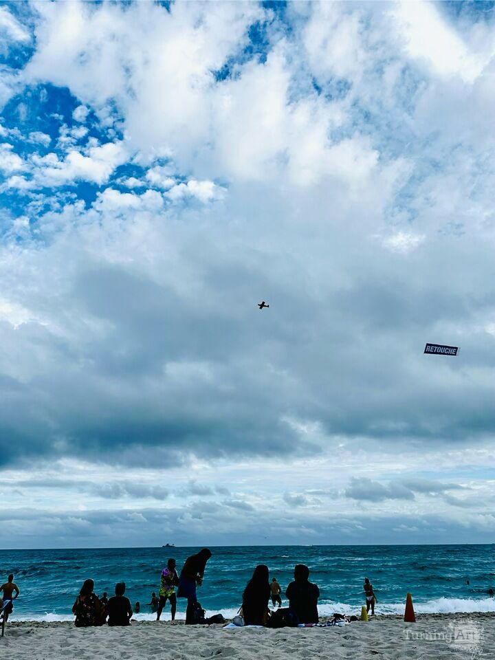 File under Florida travel and timeless moments of bliss – this shot is a reminder to me of why photography exists, to capture unique moments. Fittingly, the banner the plane if flying says "Retouche" which means retouch or transformation. That can apply to whatever you like. With a photo, a beautiful moment is captured and then refined for timeless artistic presentation.