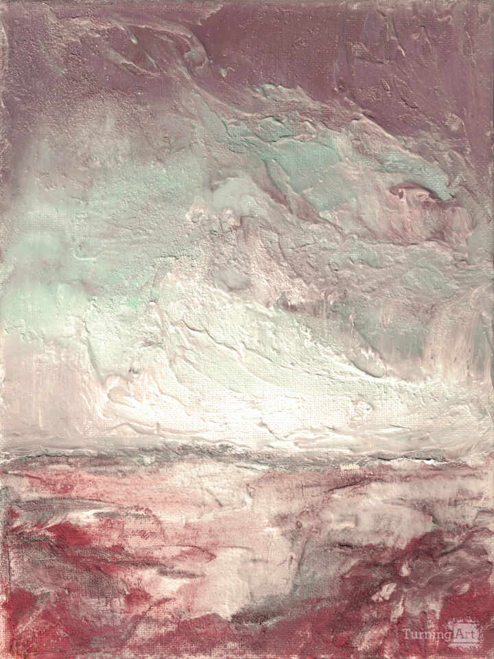 This piece is an atmospheric and expressionist nod to the beauty of the coastal Pacific Northwest, where I live and work. The moody, cloud-covered skies and turbulent waters on a stormy day inspire me greatly and remind me of Nature's majesty. This piece is visually textured with painterly brushstrokes throughout, and it's available in an array of alternate colorways to suit varied decor preferences and palette requirements.