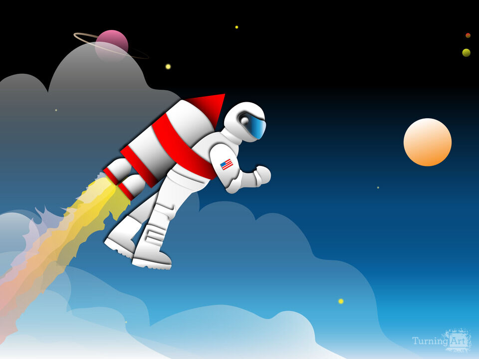 Rocket Dude is flying through outer space!