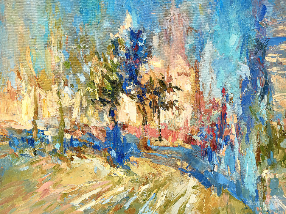 Speaking by the paintings and drawings, she brings up the time travelling discussion. The images of the past in her works are fluid and fuzzy, they are refracted through subsequent experience and present mood, giving birth to the memories of the future. True-to-life vision, deep reflection, recalling and recreating the fragments lost in memory are combined into abstract painting. Representation of impressions immediacy and memory inconstancy is also empowered by special technique: linseed oil instead of solvent leaves a place for unpredictability, chance, and with it, life itself.