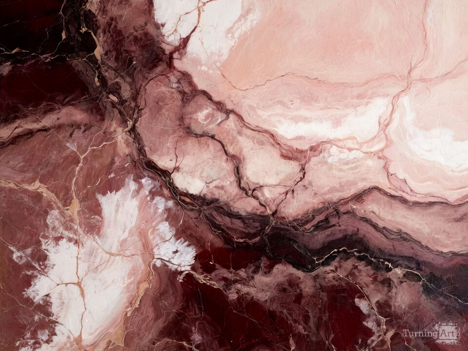“Rosewood Echoes” evokes the warm, organic richness of polished stone and ancient wood grain, layered with emotional resonance. Deep burgundy and soft blush tones ripple across the surface in smooth, branching waves that resemble veins in marble or the growth rings of a mighty tree. This piece feels rooted in the earth, yet full of memory and movement—like echoes carried through time. It strikes a harmonious balance between delicacy and strength, both visually and emotionally.