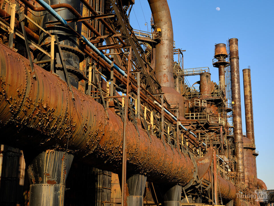 Peeling Paint and rust highlighted by the sunset light at the Bethlehem Steelworks in Pennsylvania
