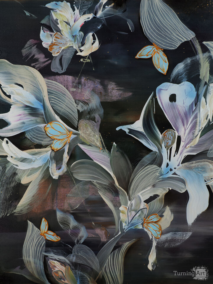 “Nature reimagined in motion: Lim’s poetic abstractions of flight and bloom.”