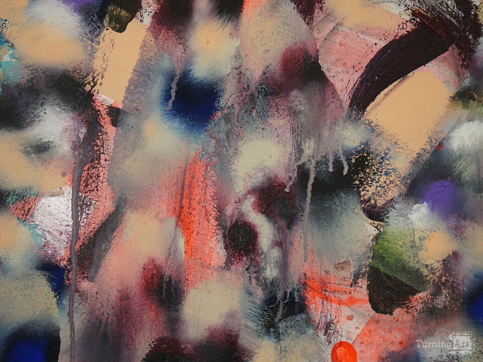 Action has always played a dominant role in the development of Joe's artist's oeuvre and the influence of alternative art forms and mediums can be seen in Joe's willingness to destroy in order to create. He prefers to staple canvas directly to the floor in order to adequately distress his surfaces. Getting paint to do unusual things by throwing, scraping or generally battering the materials is what he strives for. Joe uses liquid paint in squeeze bottles, and he developed a revolutionary new paint application method known as the "Pendulum Painting" which features a swinging bottle of paint on a string.