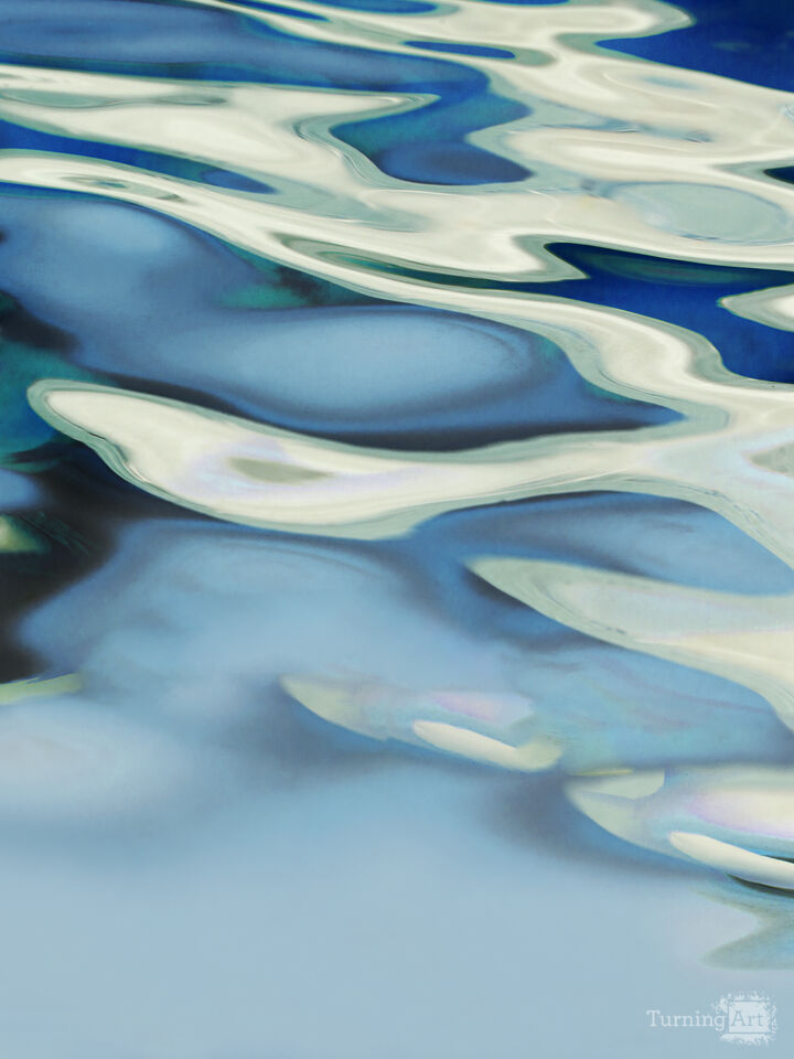 The Senses series of 3 combine many shades of blue with shapes on the surface of the sea. We appreciate how water moves and how colour interacts with the movement.