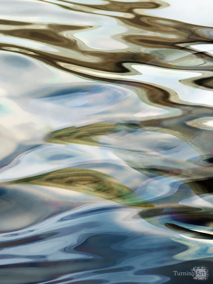 The Senses series of 3 combine many shades of blue with shapes on the surface of the sea. We appreciate how water moves and how colour interacts with the movement.